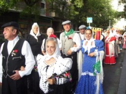 Todos los años acudimos a la explanada de la Catedral para entregar nuestra ofrenda floral y pedir a Nuestra Señora de la Almudena, patrona de Madrid, el bien para todos los madrileños, dando una muestra de bailes castizos.